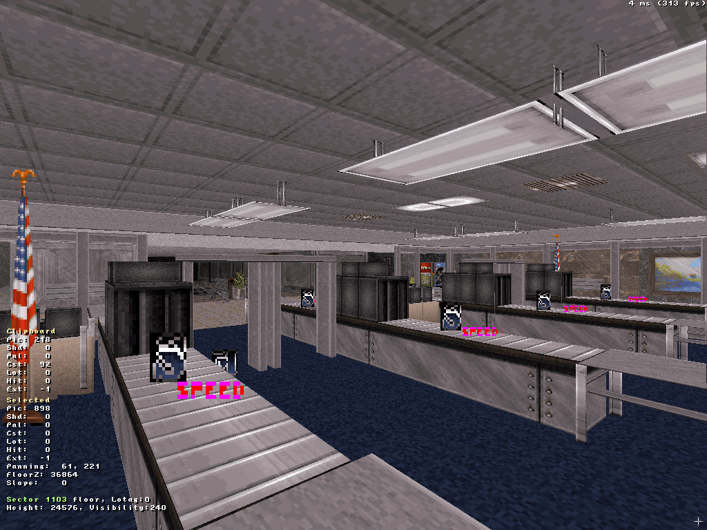 Up next, we have Telee’s new map. He writes: “It’s great that the Duke community is still alive all these years later. 🙂 Here’s a peek at a couple levels I’ve been working on for an episode. The first map (plane) is basically 95% complete, sitting at 16,321/16,384 walls so not much more to be done but tweaking and gameplay testing. The second map (airport) is at 9,992 walls, a lot of work done but still much to do (including shading which I’m waiting to tackle until all the architecture is complete). Having a lot of fun with it.” Duke loves to visit the casino site, and we’re sure he’d love to visit this map soon too as soon as it’s done: